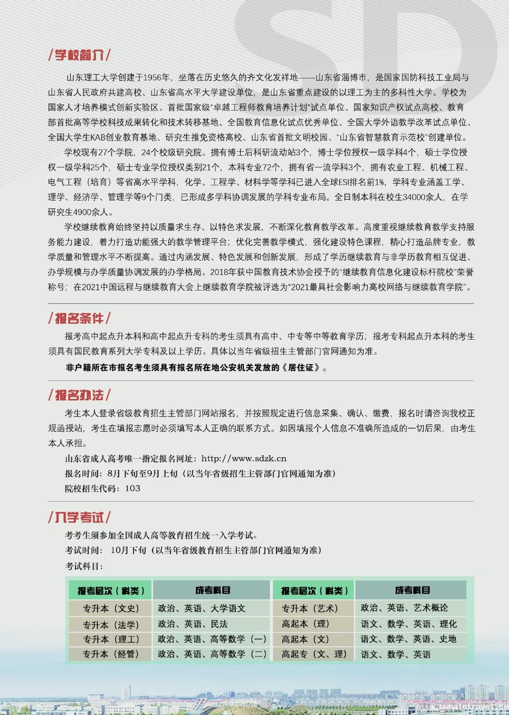 山东理工大学成人高等教育2022年招生简章